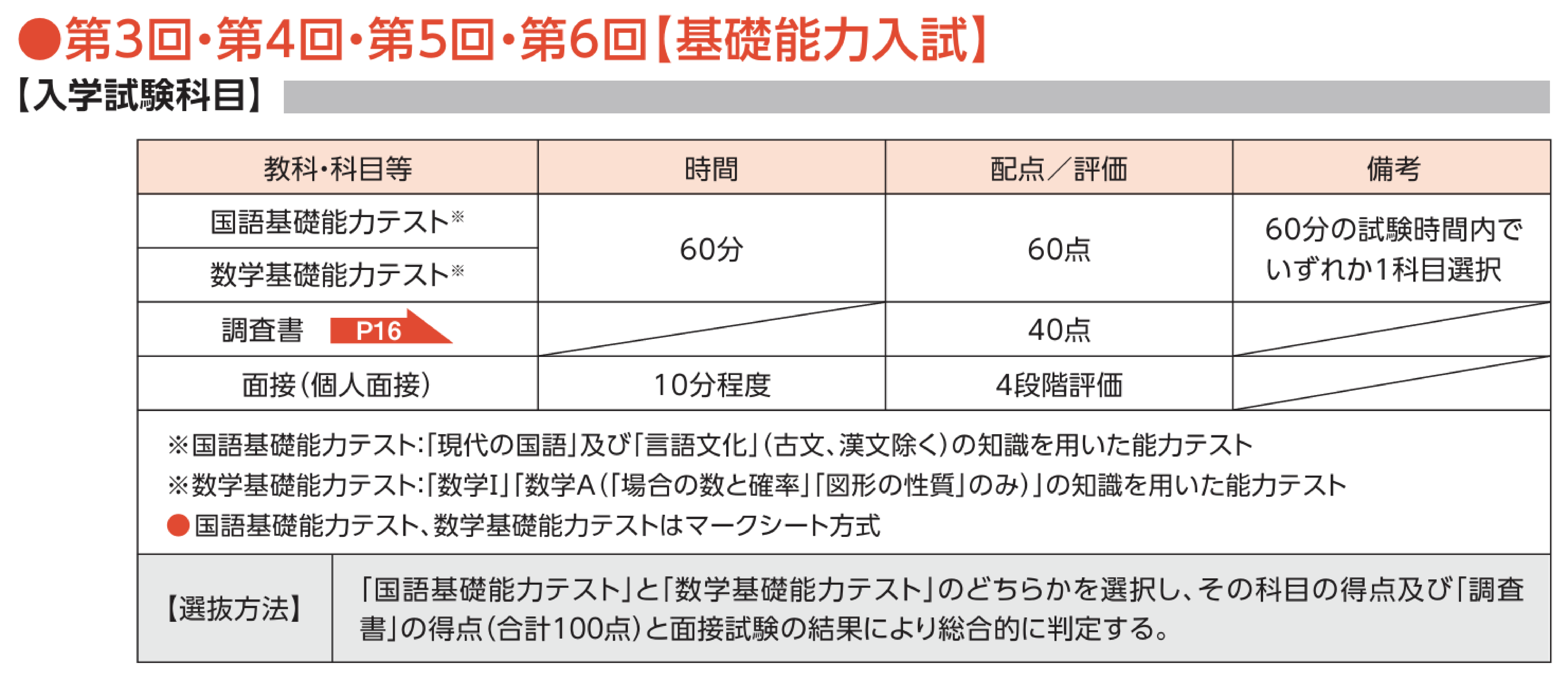 入試情報 2025.09.26 10/1(水)より2026年度 第3回総合型選抜「基礎能力入試」「探求プレゼン入試」出願登録を開始します 10/1(水)より第3回総合型選抜「基礎能力入試」「探求プレゼン入試」の出願登録を開始します。 総合型選抜とは、総合的な基礎学力を備え、かつ本学が目指すリハビリテーション専門職者にふさわしい資質や意欲を持った方を多面的・総合的に選考することを目的とした入学試験制度です。 オープンキャンパスなどから、本学のリハビリテーション学科(理学療法学専攻・作業療法学専攻)がかかげるアドミッションポリシー・教育方針をよく理解した上で、本学での勉学を強く希望し、かつ、学業、人物ともに優れ、様々な活動に積極的に取り組み、医療の専門職を目指す方の出願を待っています。 入学試験日程・試験科目 総合型選抜の詳細については募集要項 総合型選抜ページをご覧ください。 募集要項は「資料請求」ページよりご請求いただくか、「学生募集要項」ページをご確認ください。 ■WEB出願サイトはコチラ ご不明な点等ございましたら、フリーダイヤル(0120-581-834)までご連絡ください。